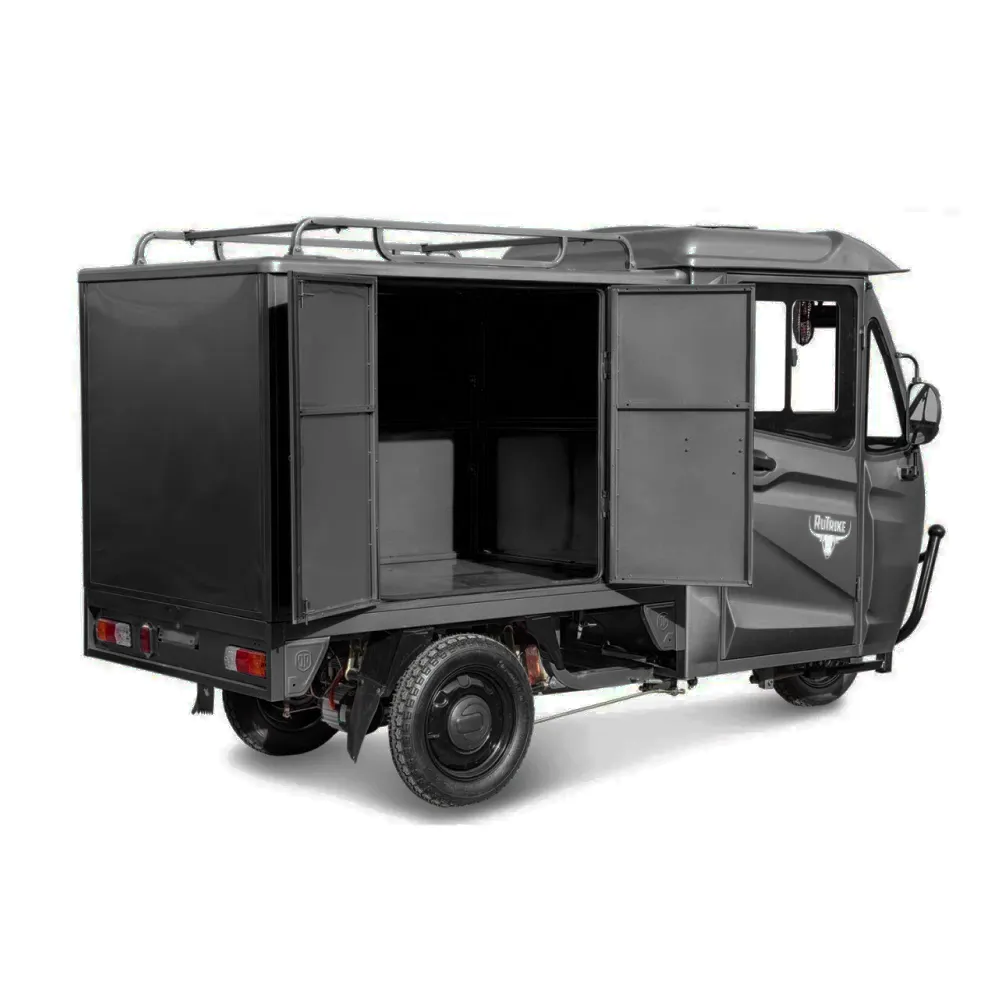Электротрицикл Rutrike КАРГО Кабина Дуал в стильном матовом черном цвете представляет собой новое слово в сфере грузовых перевозок. Это уникальное, экологически чистое и высокопроизводительное решение для перевозки грузов в городских условиях.