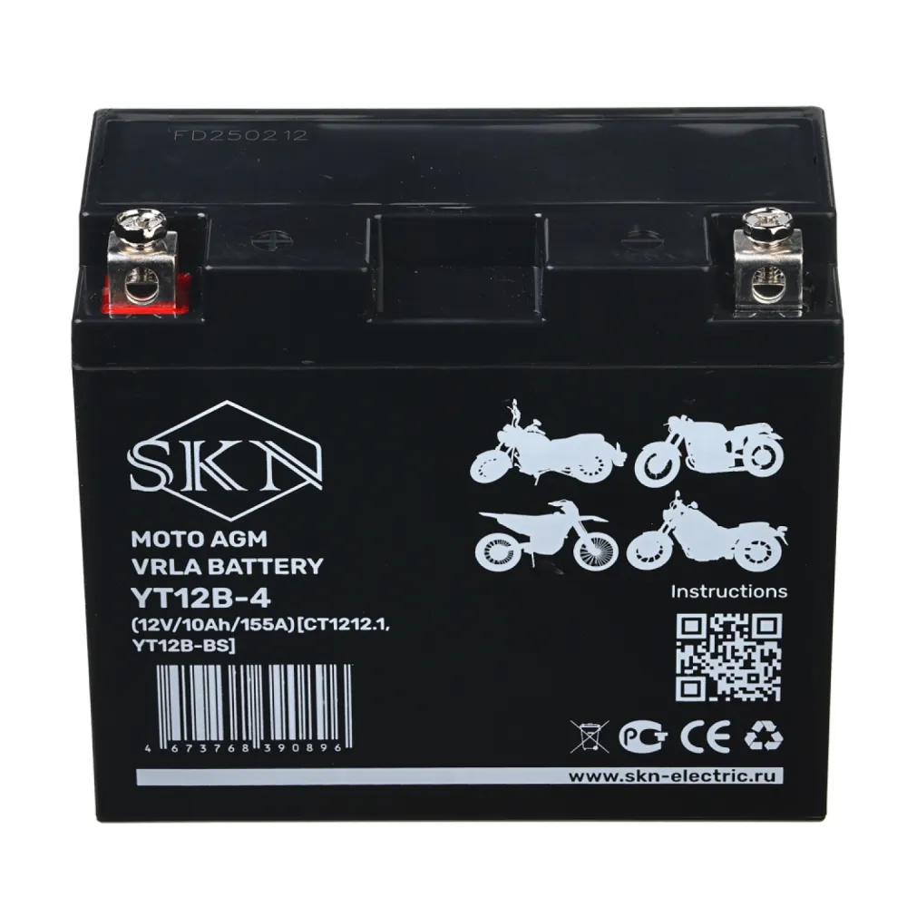 Аккумулятор стартерный для мототехники SKN YT12B-4 (12V/10Ah/155A) [CT 1212.1, YT12B-BS]
